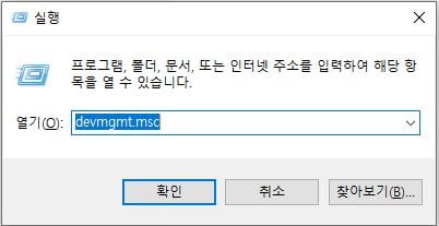 1.윈도우키+R키를 눌러 실행 창을 띄우신 후 devmgmt.msc를 입력해주세요.