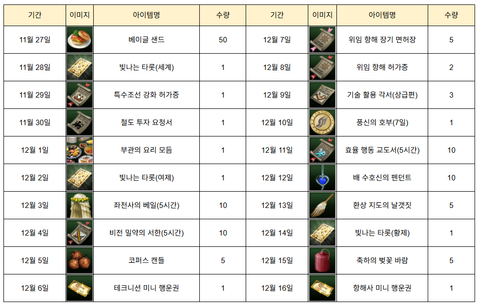 기간 : 11월 27일(목) 점검 이후 ~ 12월 10일(수) 23:59:59 까지