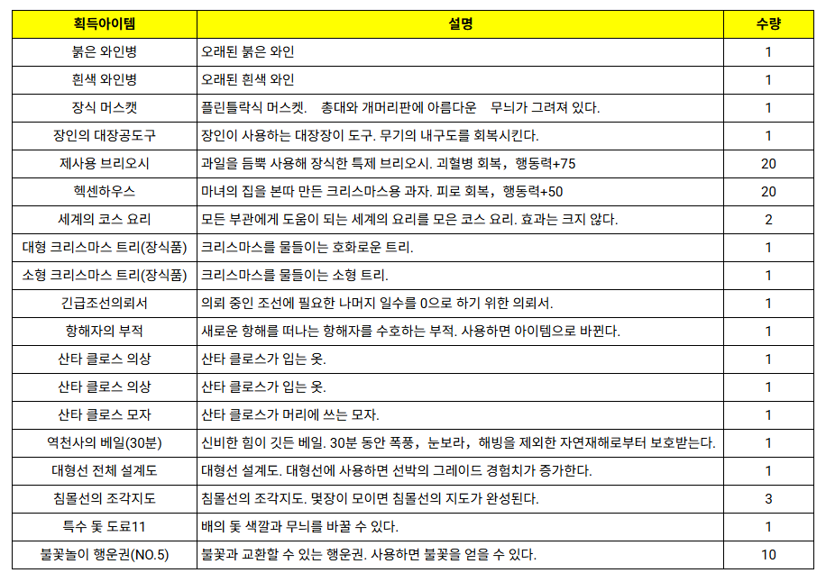 홀리 기프트 박스 : 사용 시 아래 아이템 중 하나를 획득할 수 있습니다.