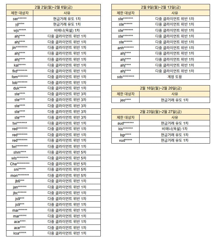2월 운영 정책 위반 목록을 안내 드립니다.